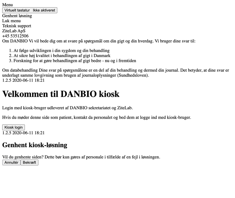 - For problemer, der ikke kan afhjælpes via information på danbio.dk, beder vi afdelingen sende følgende informationer til support@zitelab.dk: mobilnummer, navn og første 6 cifre fra cpr., hvornår (dag og time), var det på touchskærm i venteværelse eller hjemmefra, hvis da på mobil eller computer? Der vil herefter ske en prioritering af henvendelser, evt. således at patienten vil blive kontaktet direkte af en medarbejder fra ZiteLab for at afdække evt. særlige problemer.
